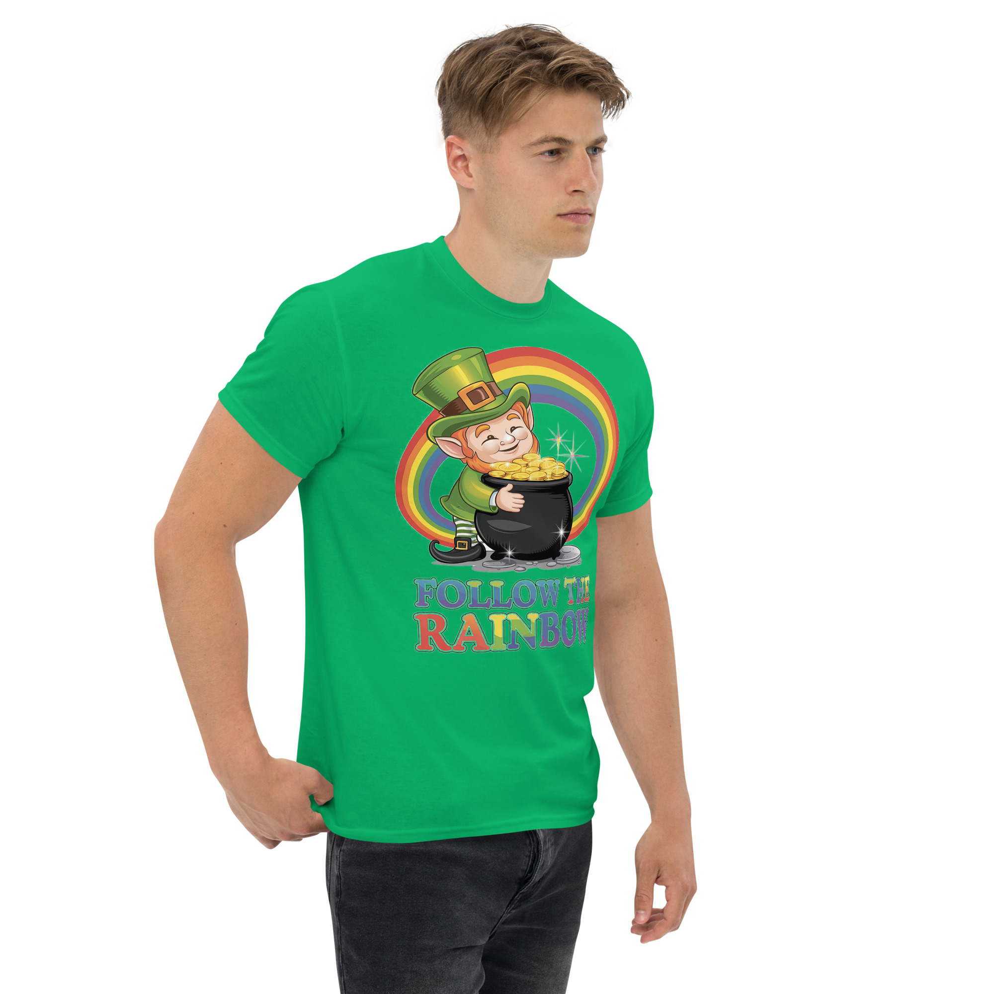 Bring color, luck, and cheerful Irish spirit to your outfit with the Follow the Rainbow Leprechaun Pot of Gold St. Patrick’s Day T-Shirt. This playful design features a smiling leprechaun hugging a pot of gold beneath a bright rainbow, symbolizing luck, joy, and the fun-loving energy of St. Patrick’s Day celebrations.