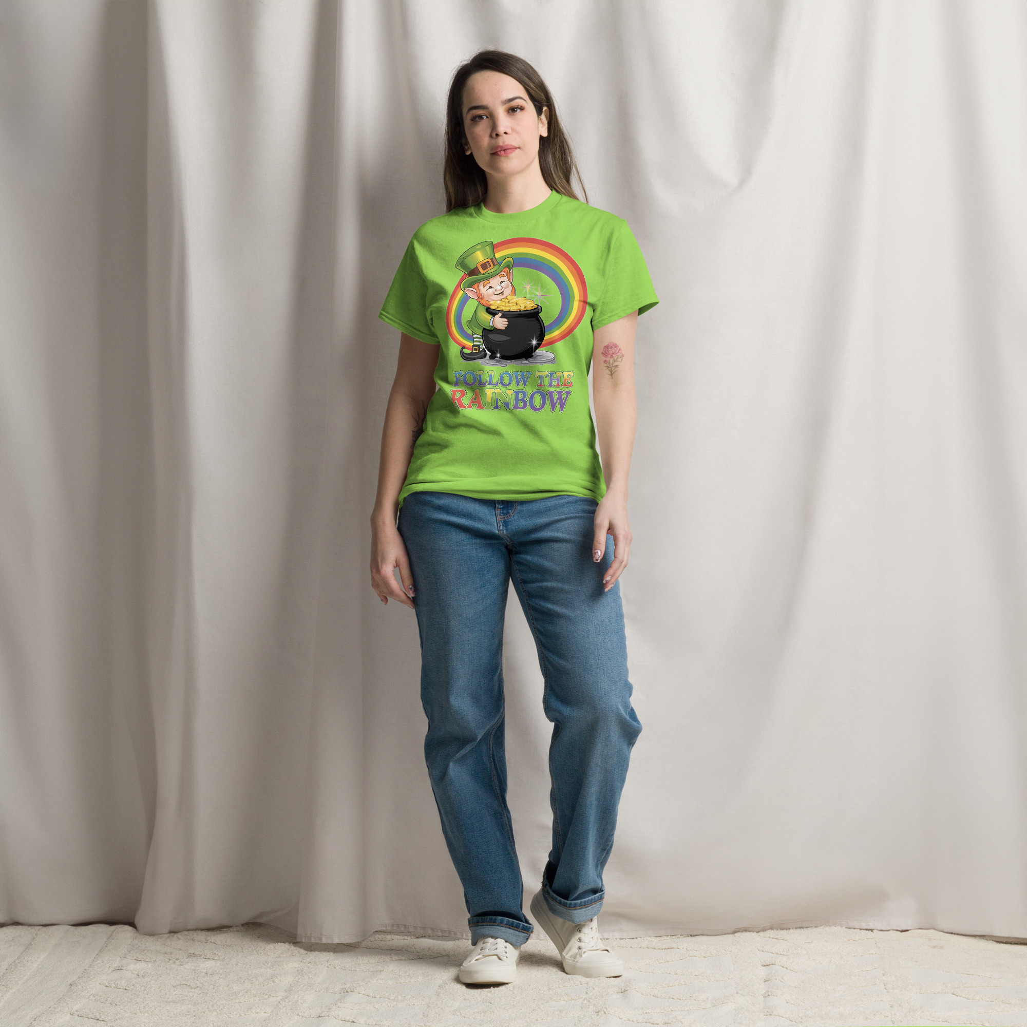 Follow the rainbow, wear the luck, and enjoy the celebration! 🌈🍀✨ The 100% cotton unisex classic tee will help you land a more structured look. It sits nicely, maintains sharp lines around the edges, and goes perfectly with layered streetwear outfits. Plus, it’s extra trendy now!