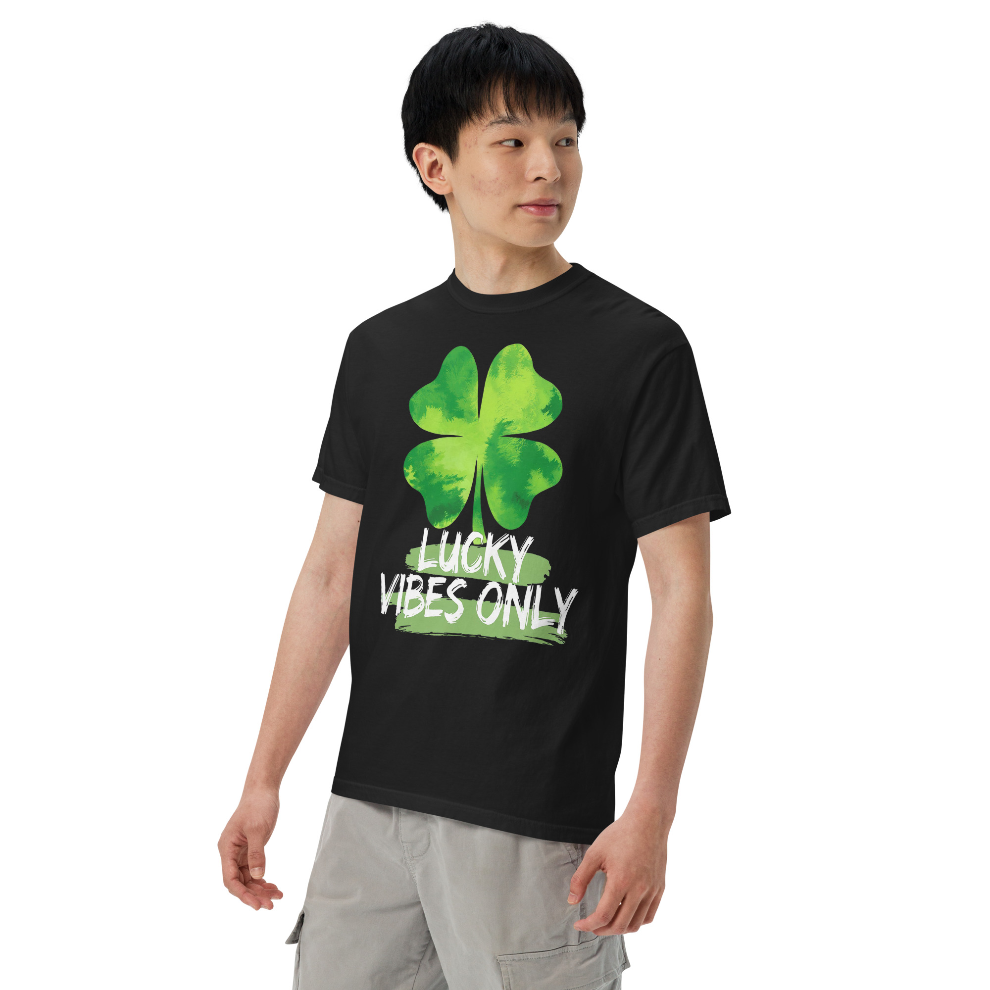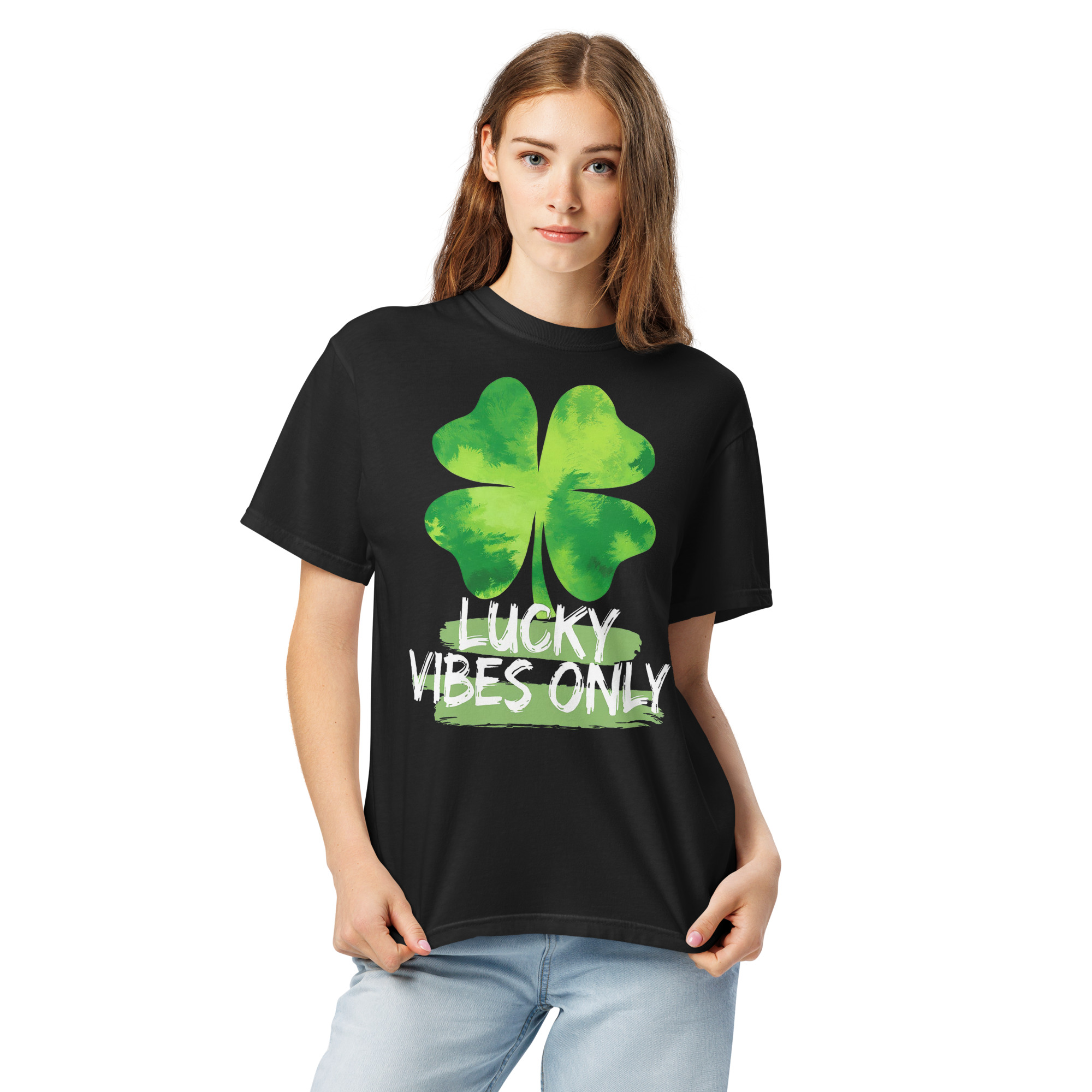Lucky Vibes Only Green Clover Graphic T-Shirt – St. Patrick’s Day Style Unisex garment-dyed heavyweight t-shirt