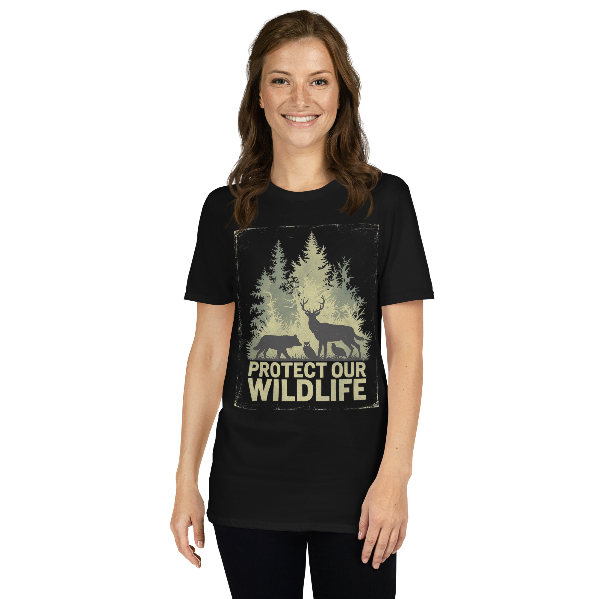 Protect Our Wildlife Forest Art – Nature Animal Silhouette Conservation Design Short-Sleeve Unisex T-Shirt