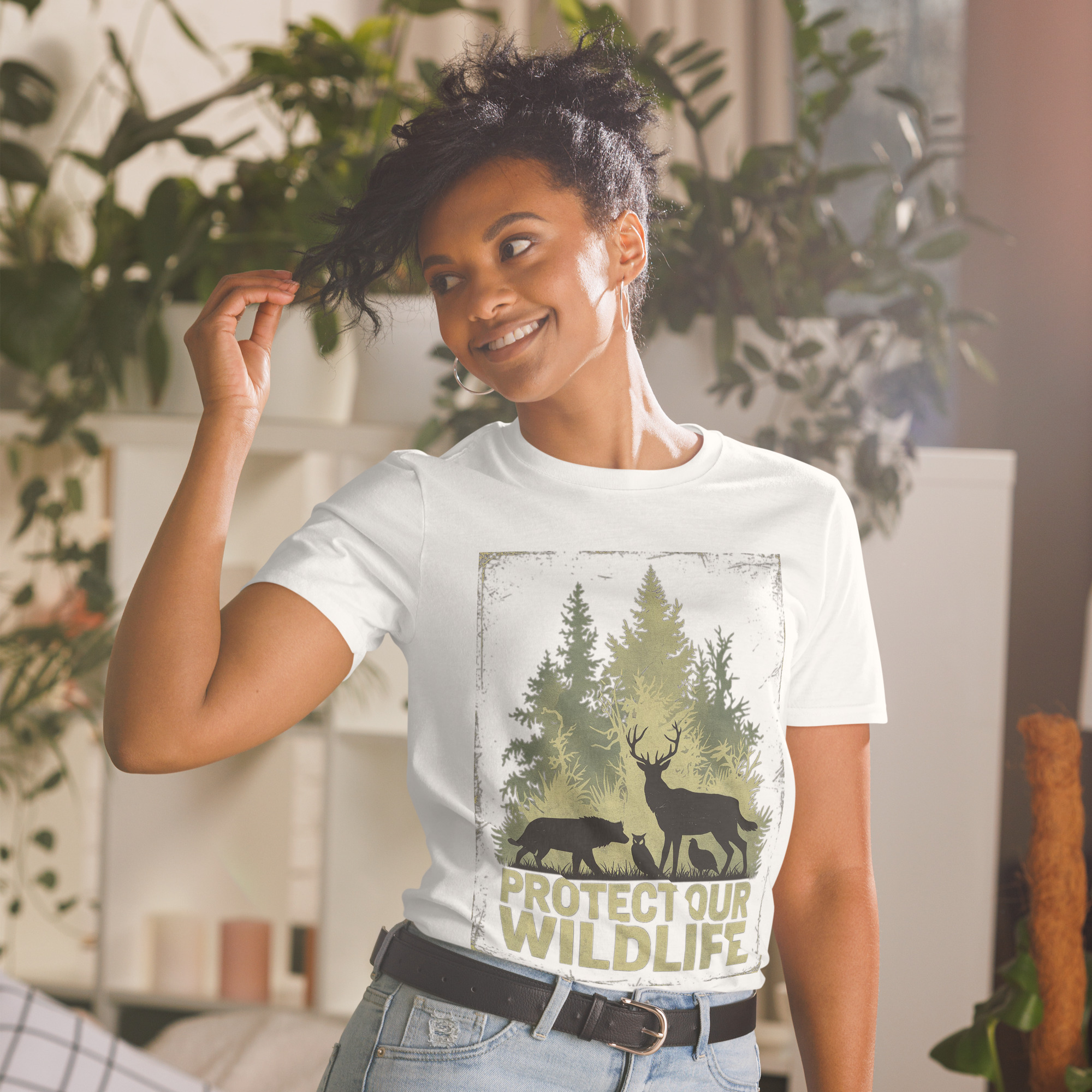 protect our wildlife forest art – nature animal silhouette conservation design short sleeve unisex t shirtProtect Our Wildlife Forest Art – Nature Animal Silhouette Conservation Design Short-Sleeve Unisex T-Shirt